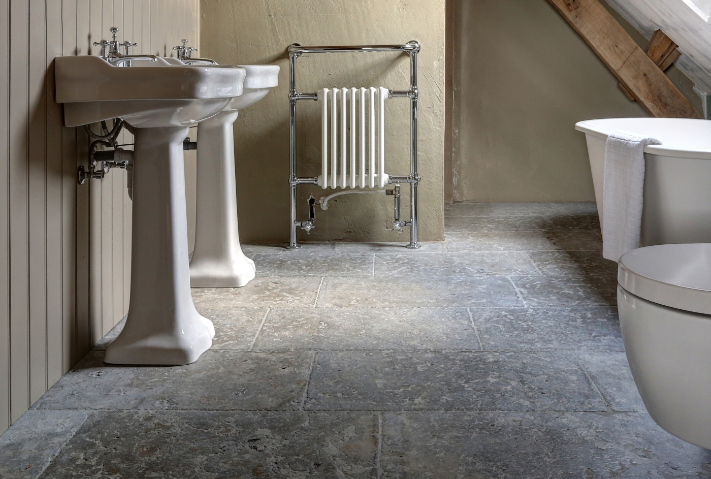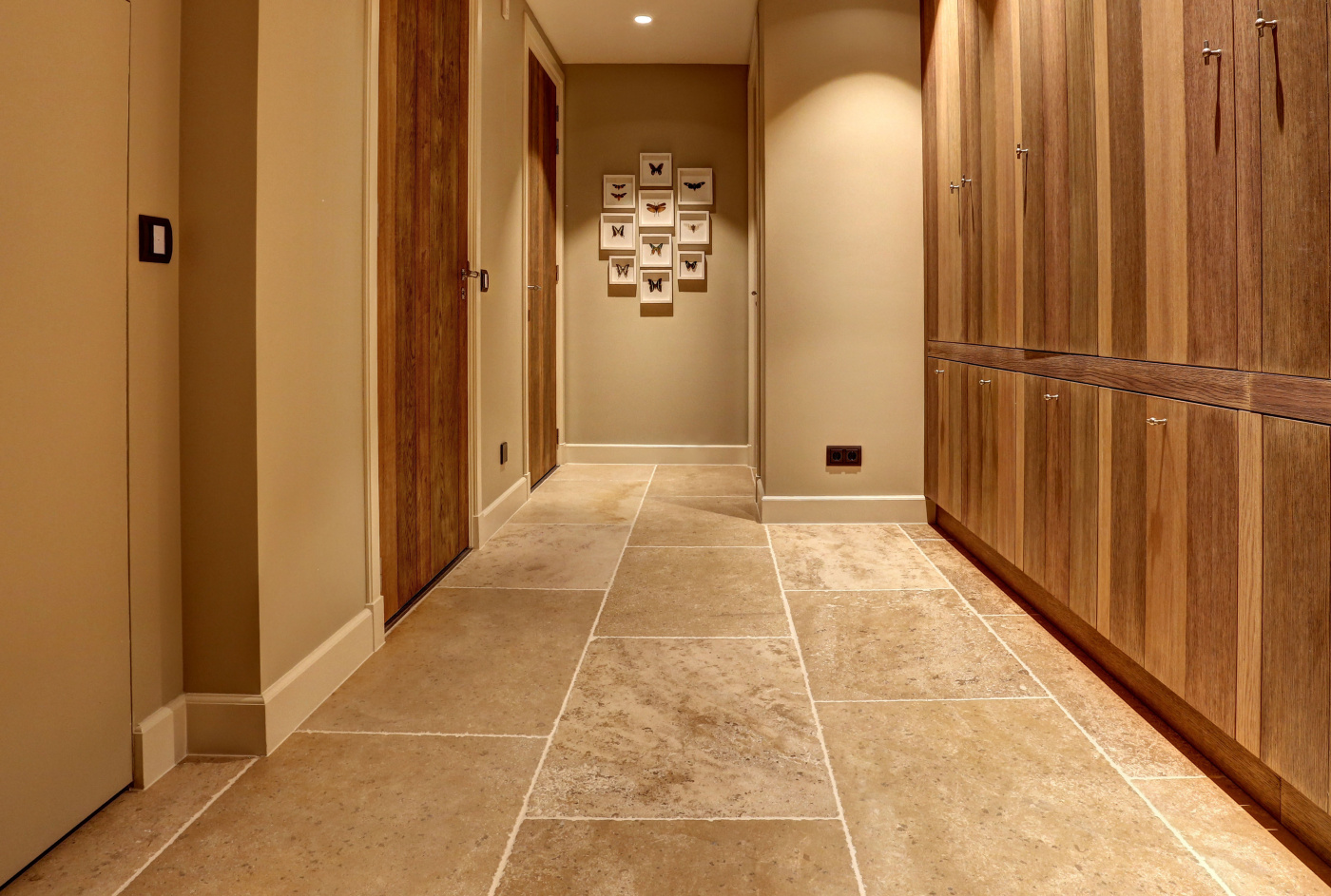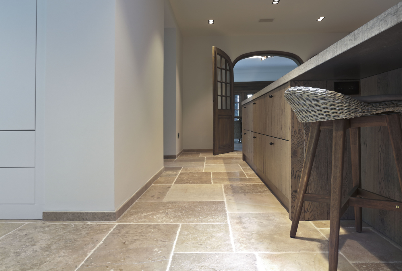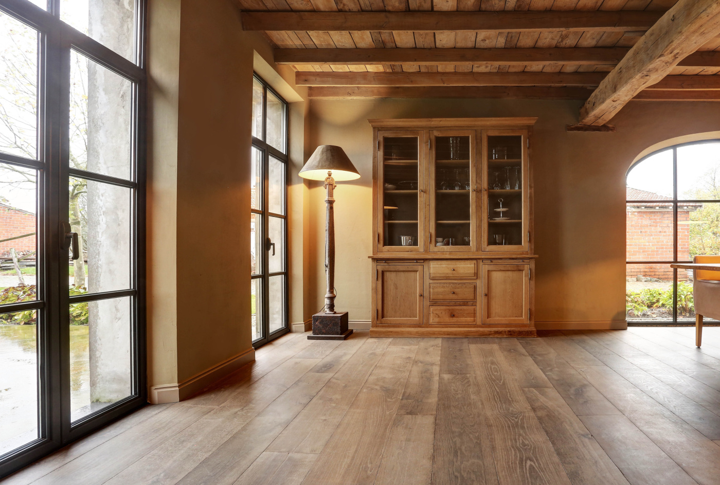 At this authentic farm, we have laid Burgundy Dalles all over the lower level. This floor is very good in combination with the kitchen and interior design. The Burgundian Dalles are also down in the basement. In the bedroom we have laid the authentic wooden planks floor 'Manoir' which also fits well with the Burgundian dales in the hall. A very successful project for us!