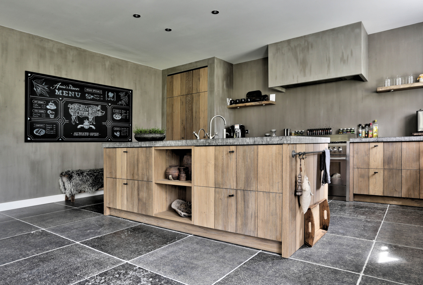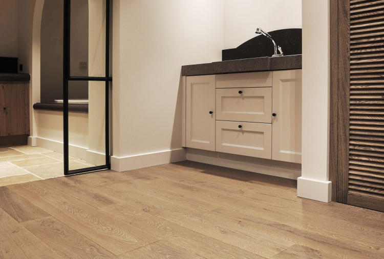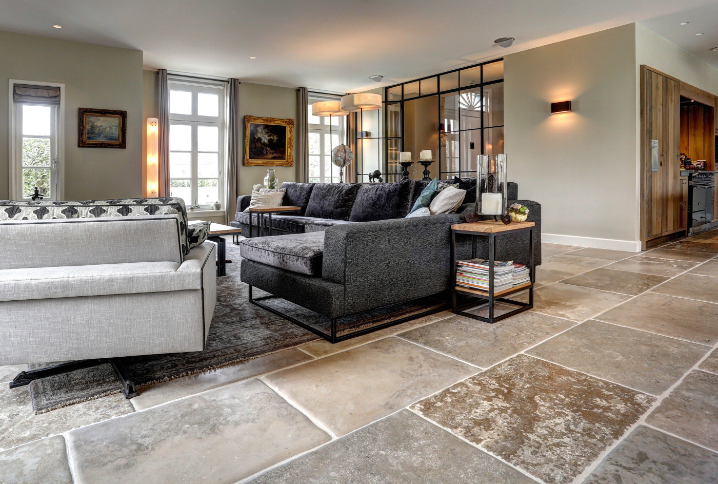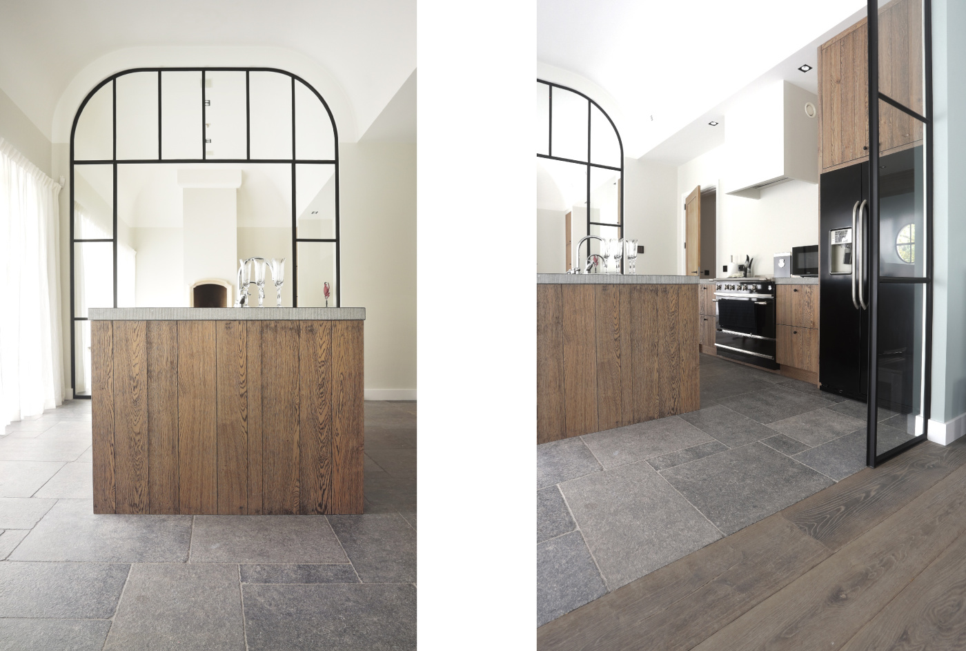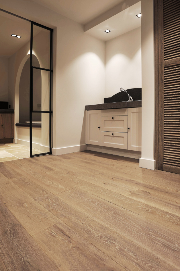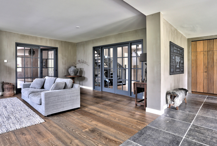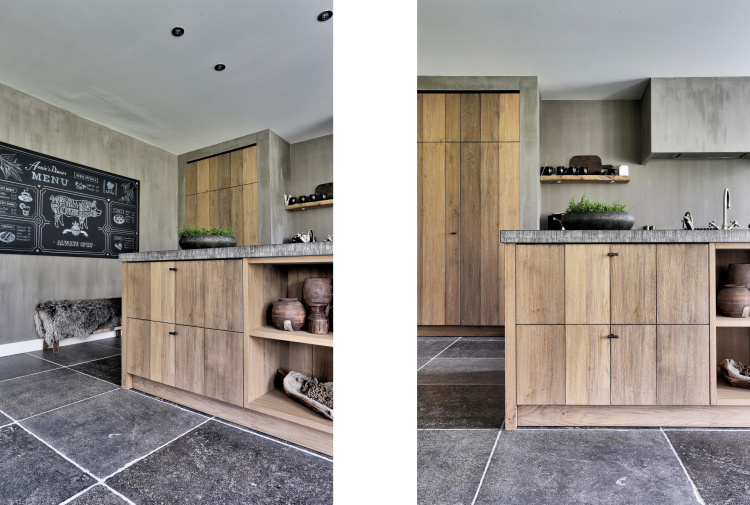 This farm has been beautifully renovated. The residents have extended the country style in every detail! We have been able to supply two beautiful floors for this beautiful project. In the kitchen we laid our Belgian hard stone floor La Bourse and in the living room, hall and utility room we laid the aged wooden plank floor. The whole has become beautiful!