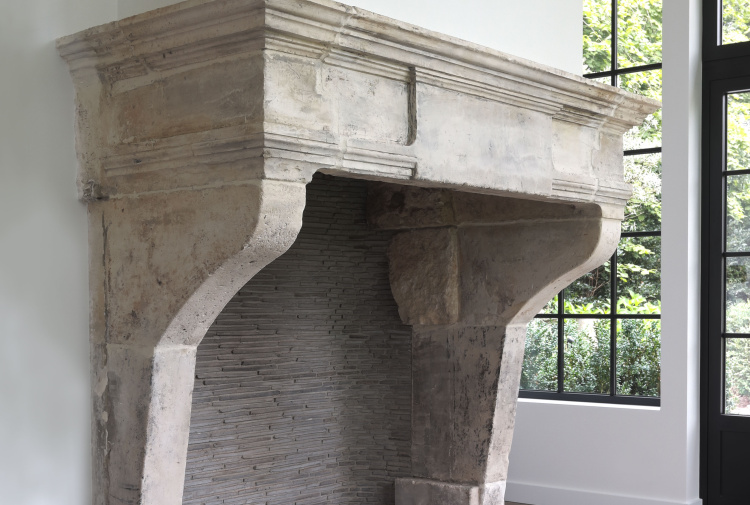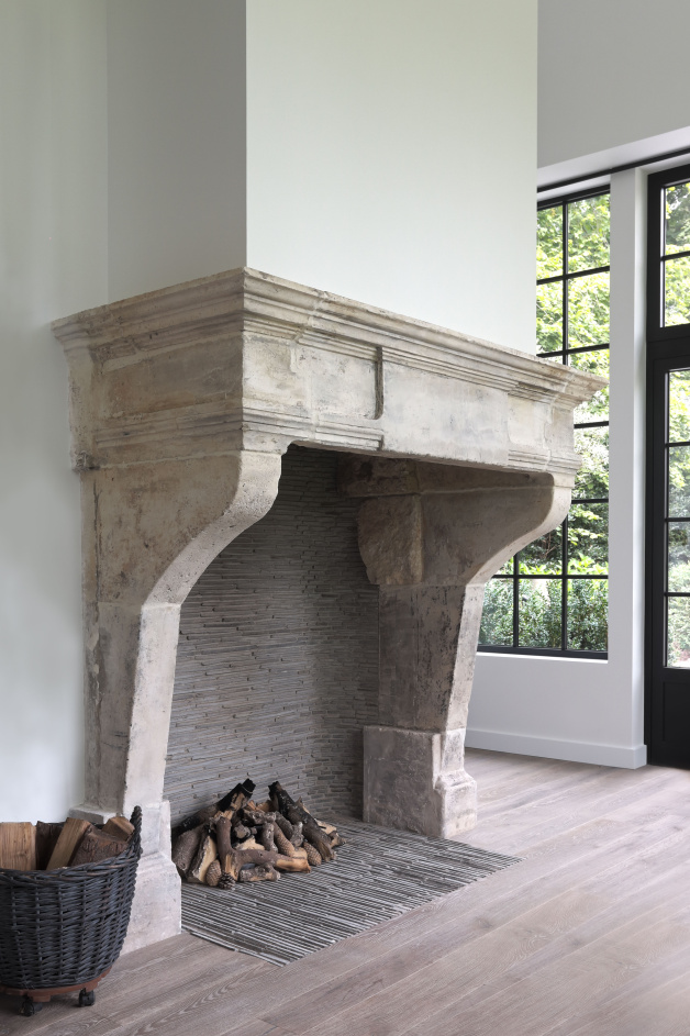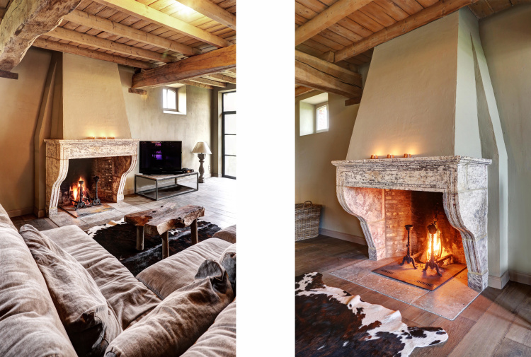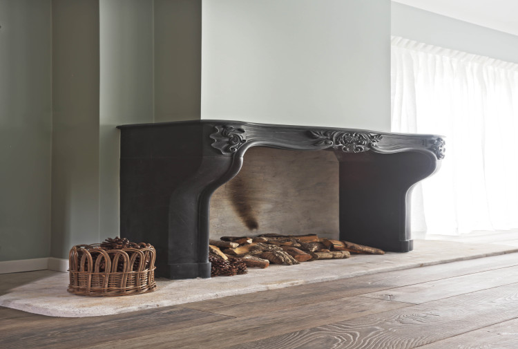 At this beautiful house we have placed both floors and fireplaces. A beautiful black marble fireplace and a chimney in the style of Campagnarde! In the hall, bathroom, kitchen and bedroom they have Burgundian dales. We also placed a Belgian bluestone floor called L' Authentique in the outbuilding that looks really stunning.